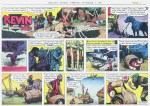 “Kevin el Denodado” ‘s debut, in issue No 2232, was appropriately bold—in addition to landing on the magazine’s cover, its center spread was comprised of the strip’s first three episodes. For the next five issues of Tit-Bits, other comic strips appeared on the cover, and only a single, tabloid version of “Kevin the Bold” appeared inside. For No. 2238, Collins’ comic regained its spot on the cover, and another three-episode spread appeared inside. (Eventually, “Kevin” ‘s appearance on the cover no longer signified a triple-episode spread inside—later issues only had single tabloid episodes. Unlike some other Tit-Bits comics, “Kevin” continued to run in color).