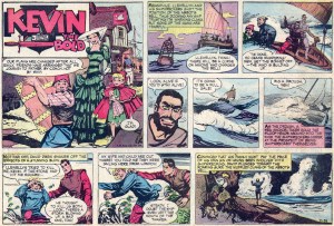 Perhaps curious only to me, but in the two panels after the throwaway, the movement Kevin is making can only be described as “sidling.” Not commonly represented in comics—or anywhere, really—the only place I ever remember hearing the word is in this 1965 Johnny Cash A-side. A shame—it’s a great word!