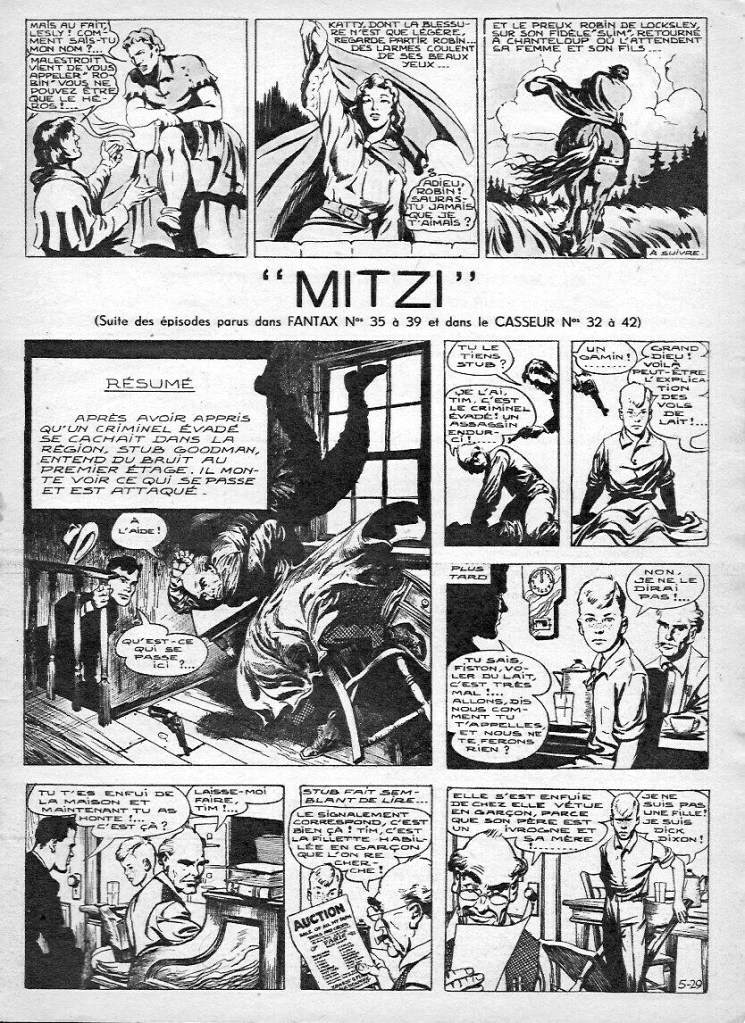 I wasn’t able to find many images of Robin des Bois covers online, so I’m not sure if Mitzi still ran on the back cover. The action inside No. 28 is from Mitzi‘s May 29, 1949 episode.