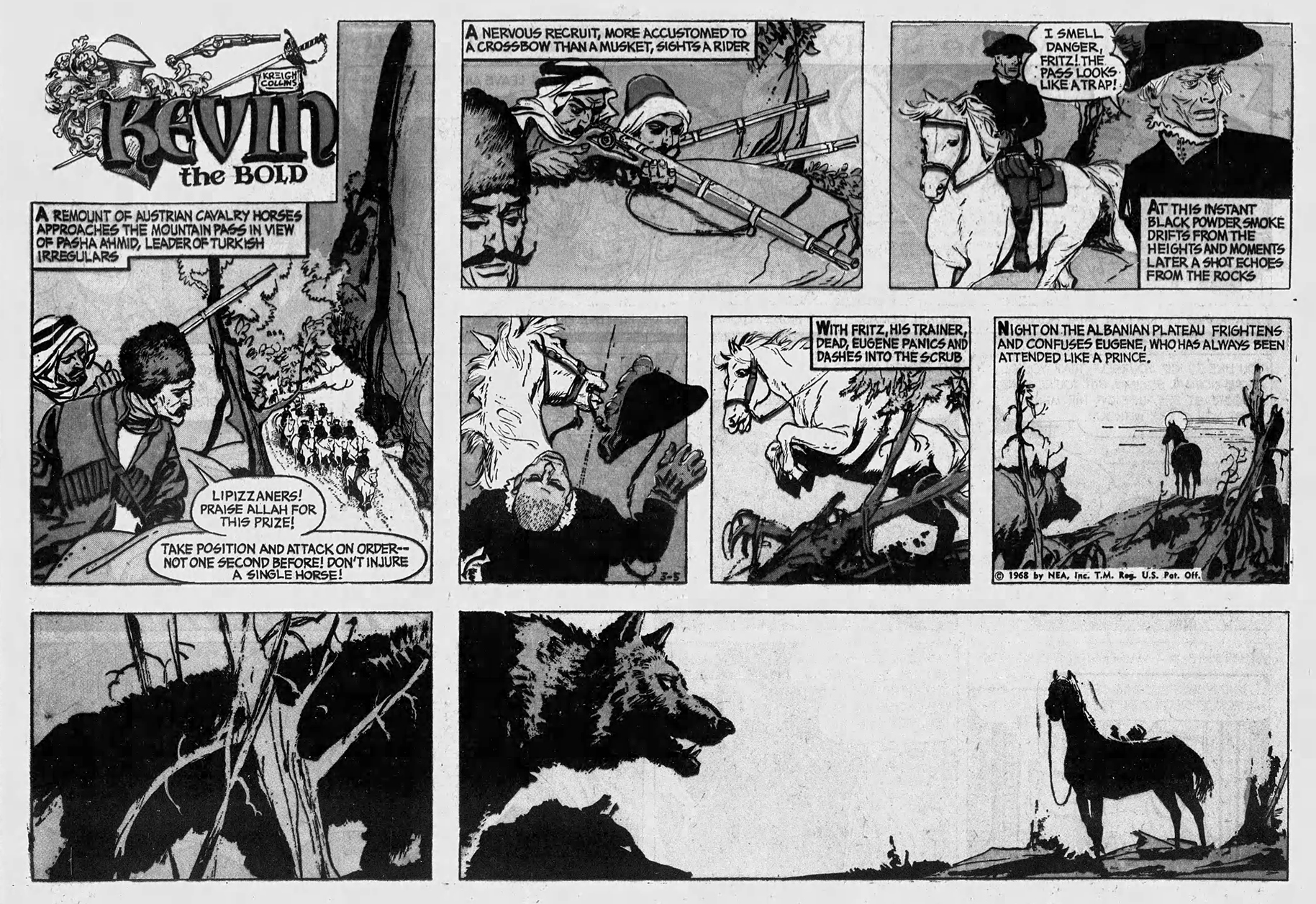 Kevin lives by the knightly code of conduct where it is his duty to protect women, children, and the oppressed; he feels equally protective toward horses (as the Count De Falcon learned in the second-ever chapter of Kevin’s saga).