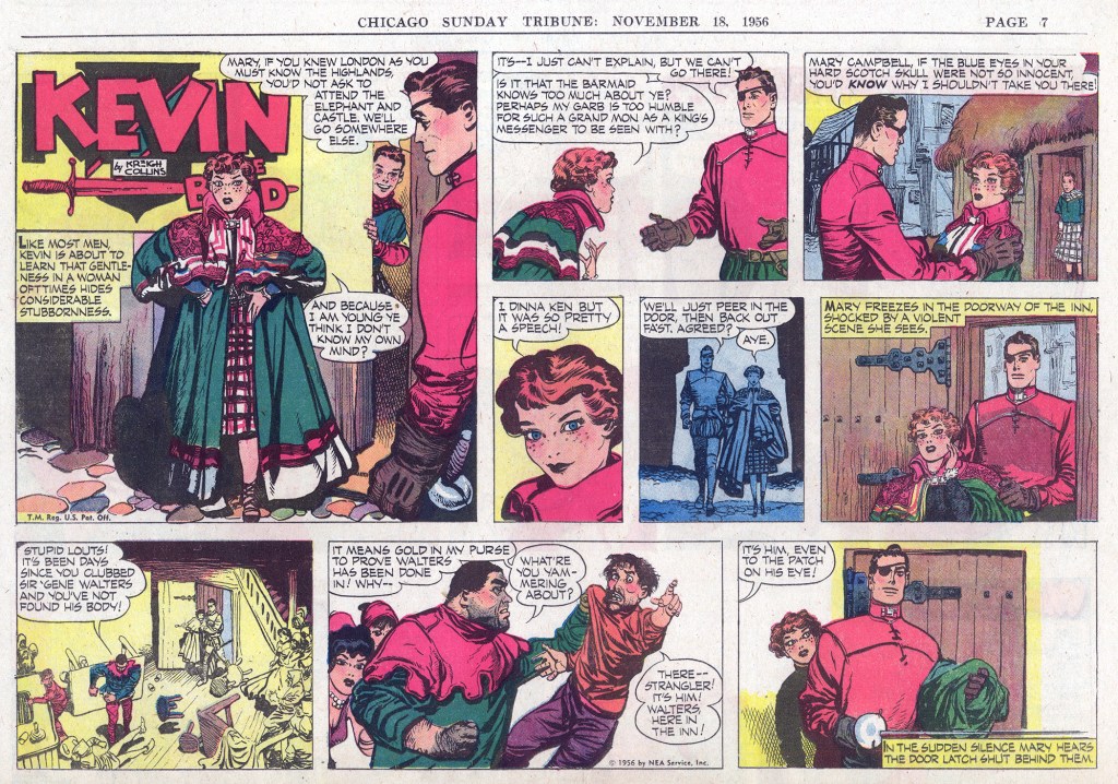 Kevin tries to put his foot down, but Mary convinces him otherwise—and who could resist a lass such as shown in the throwaway panel?