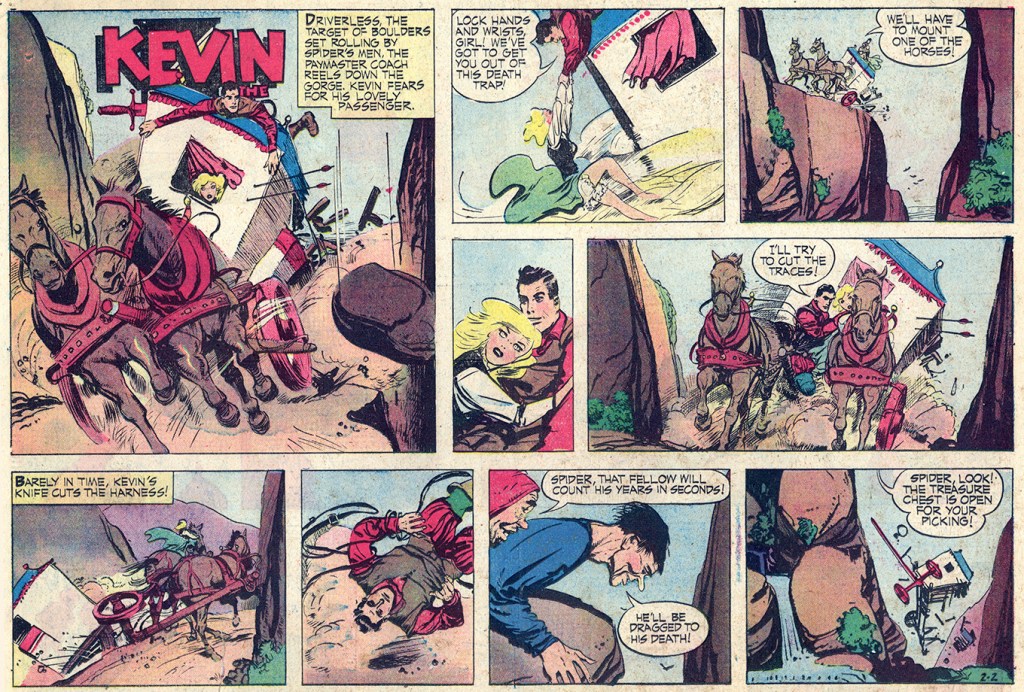 In a highly kinetic episode with each panel seemingly ripped from an action film, Kevin deftly rescues Ella before the coach flies off the road.