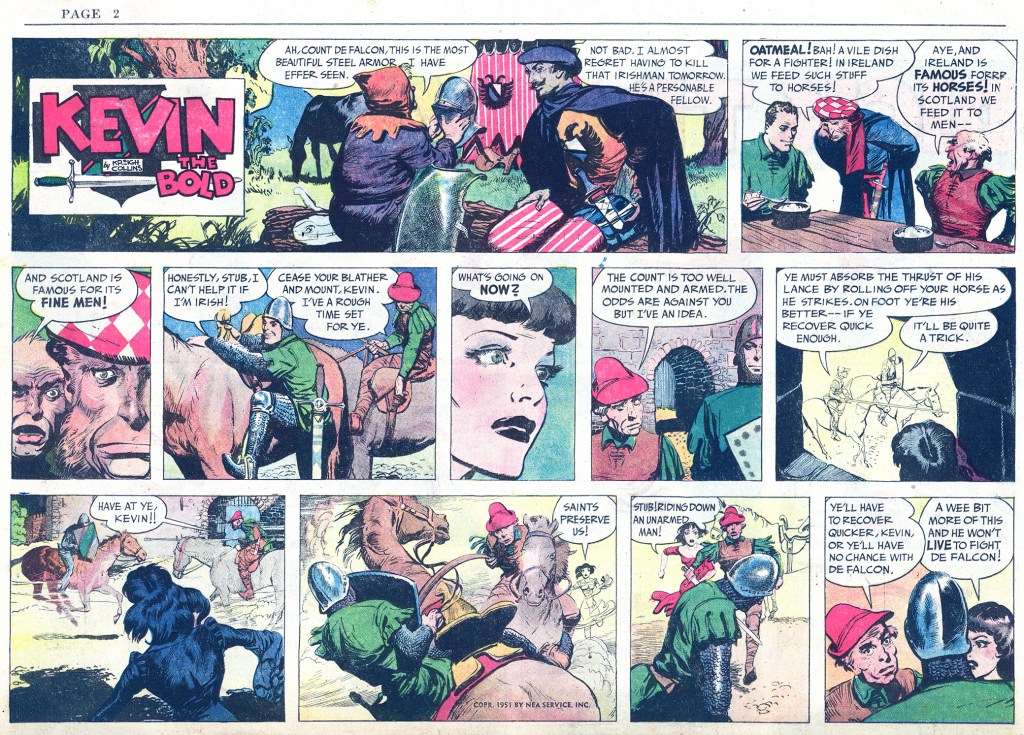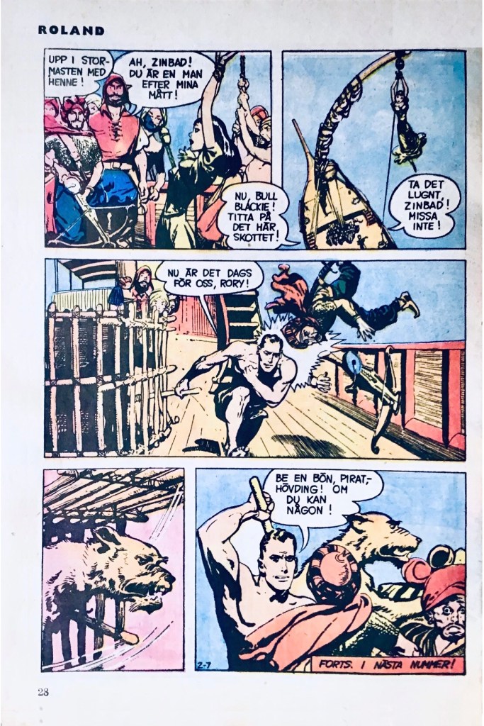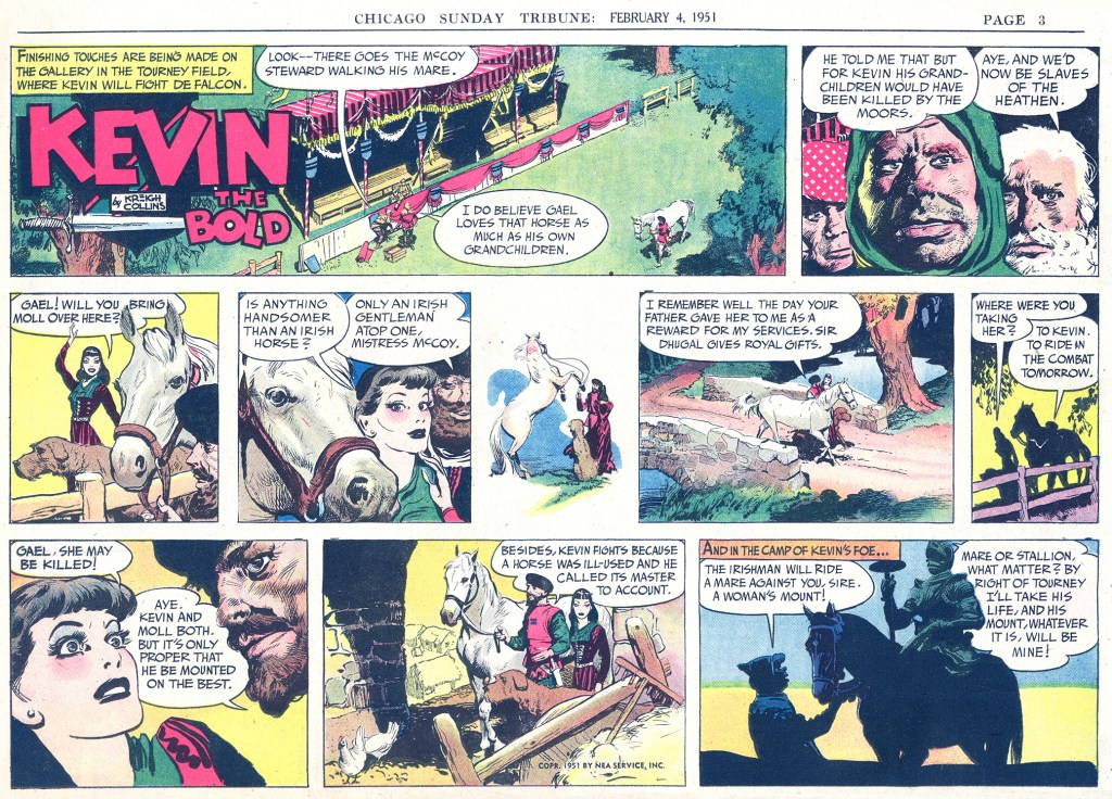 In Sweden, installments of KEVIN THE BOLD first appeared in the weekly magazine Allas Veckotidning. These tabloid versions, called FALCON Storm fägeln, started running in the summer of 1951. Two years later, Kreigh Collins’ Sunday comics feature found another Swedish outlet, this time as a component of the TOM MIX comic book series.