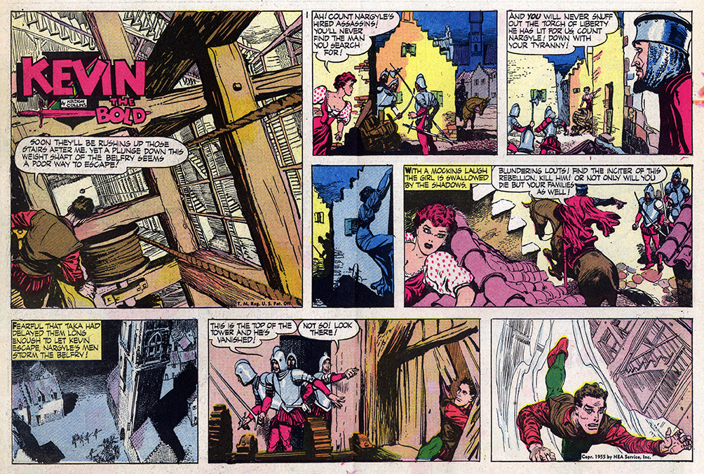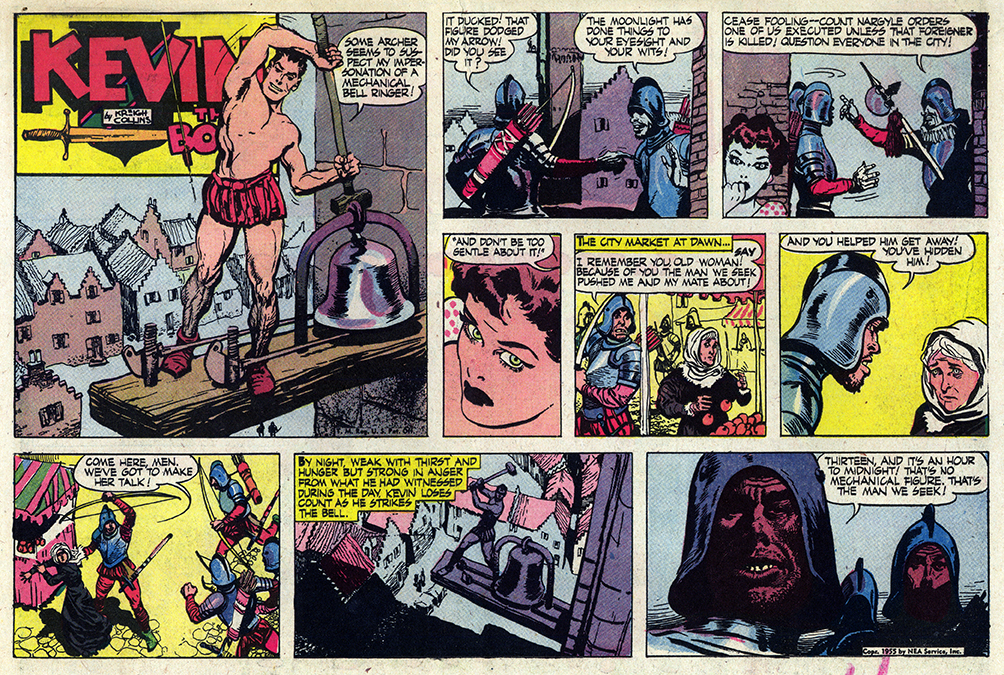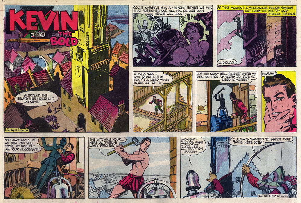 The chapter continues with three more beautifully-drawn episodes. Of note, each of the ten episodes includes a double-decked splash panel. The September 11 installment features one with a wonderful rendering of the town’s imposing bell tower (possibly inspired by the famous Belfry of Bruges); the rest of the episode’s panels match it in quality and drama. Meanwhile, trapped in the belfry, Kevin’s options are limited.