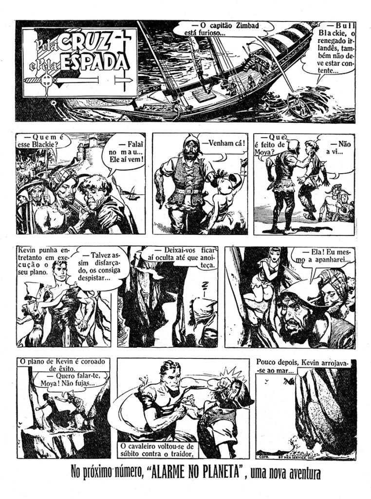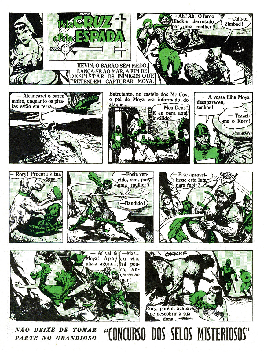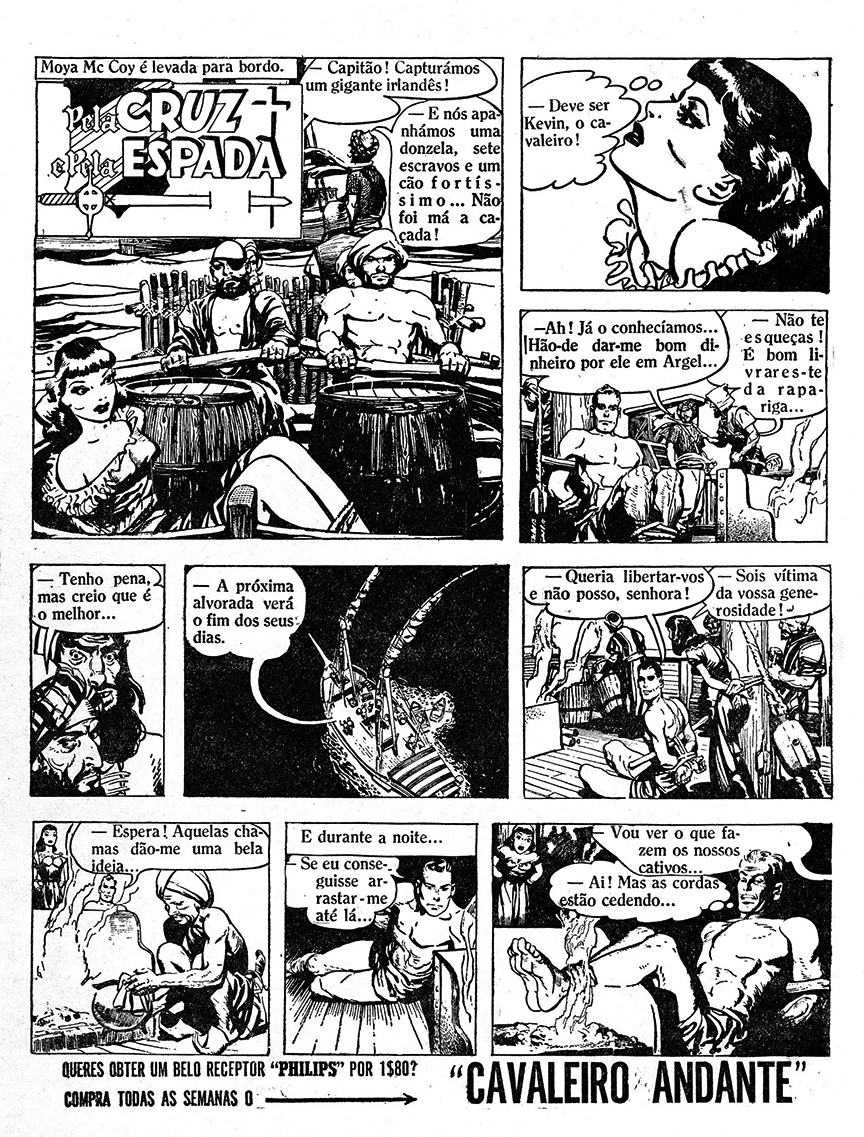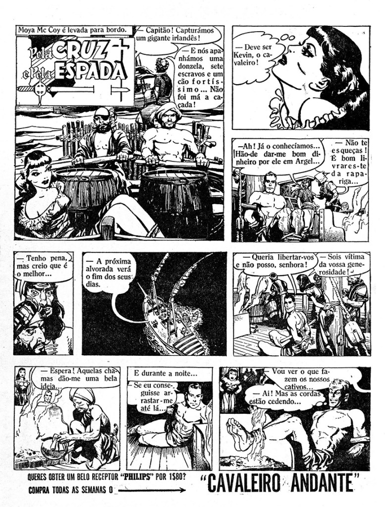 Pela Cruz e Pela Espada ran in 41 issues of the magazine (issues No. 5 through No. 46), and started on February 2, 1952. It began with Kevin’s debut adventure about the Moorish pirate raiders.