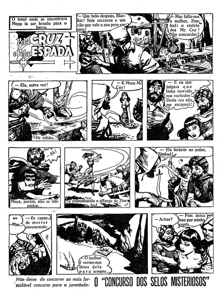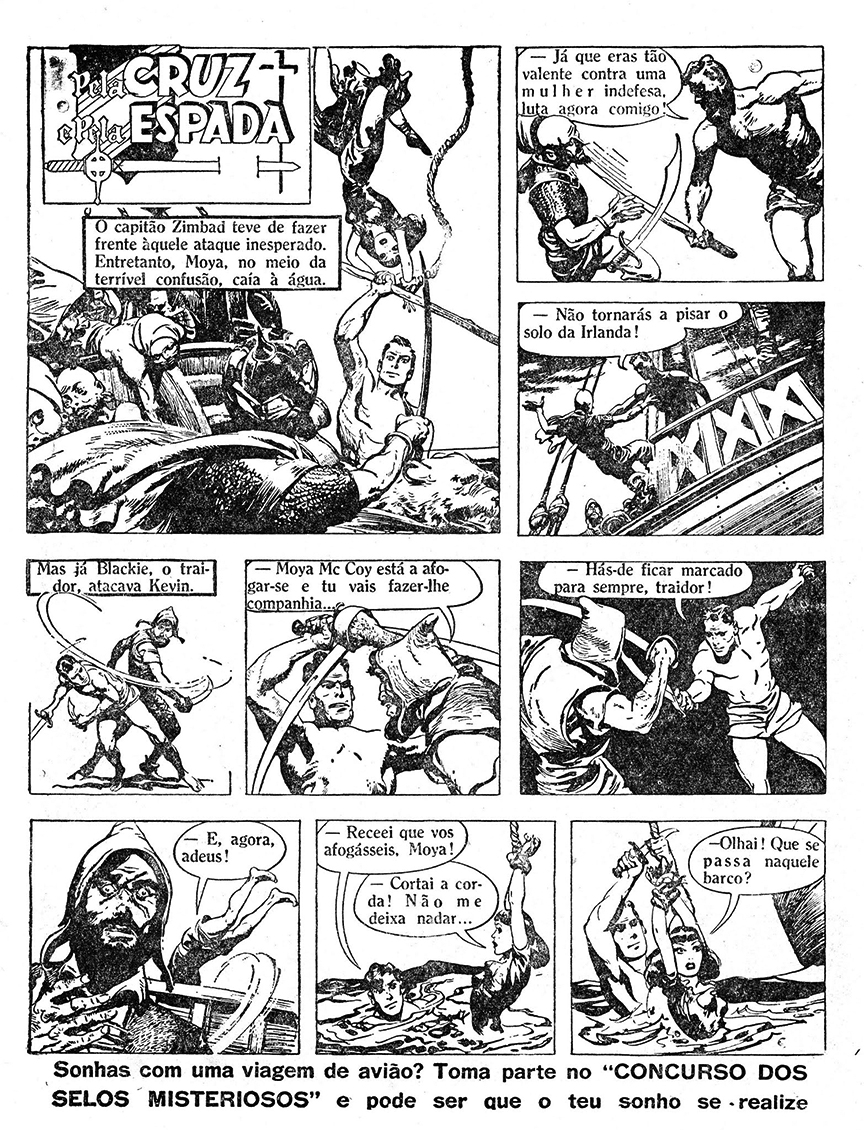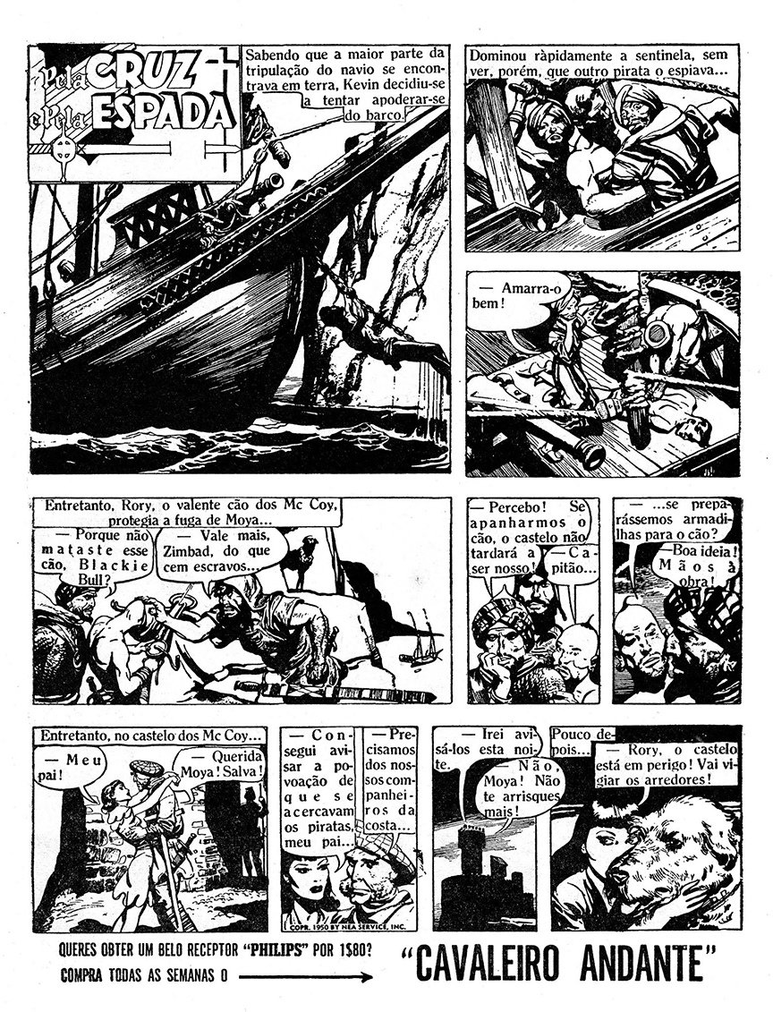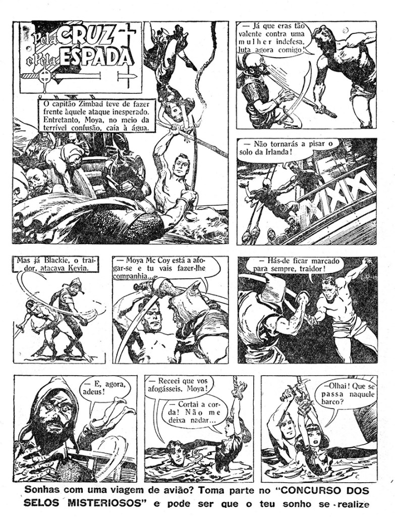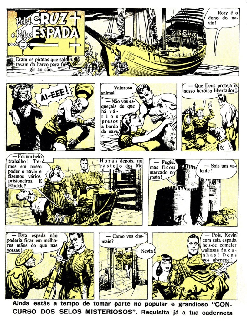 Pela Cruz e Pela Espada ran in 41 issues of the magazine (issues No. 5 through No. 46), and started on February 2, 1952. It began with Kevin’s debut adventure about the Moorish pirate raiders.