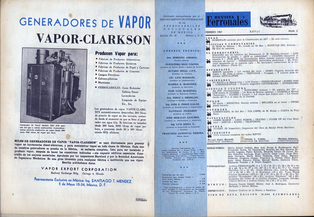 In addition to numerous articles on the railroad industry, it also features a very wide range of editorial content. Sections include Ideas, News and Comments, Reports, Variety, Science and Culture, Home, Sports, Shows, Books, and Historieta, (Cartoons).