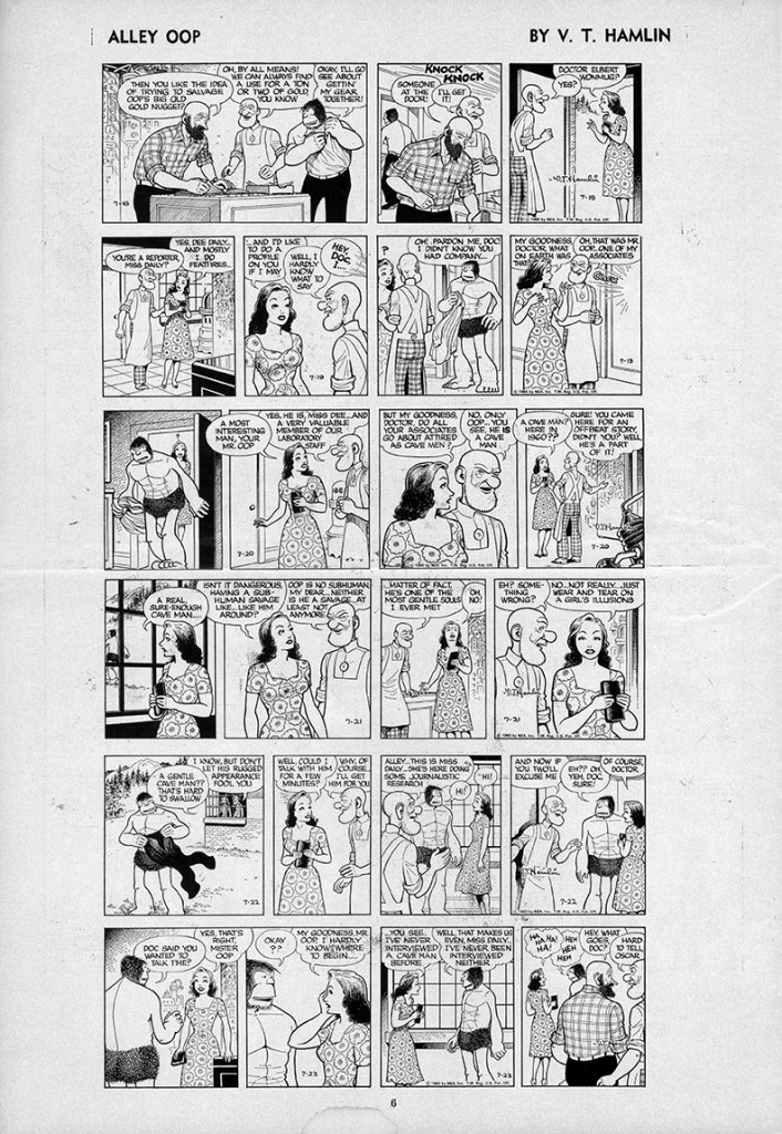 Pages 5 and 6 feature V.T. Hamlin’s Alley Oop Sunday and dailies, followed by Merrill Blosser’s Freckles and His Friends Sunday and dailies on pages 7 and 8.