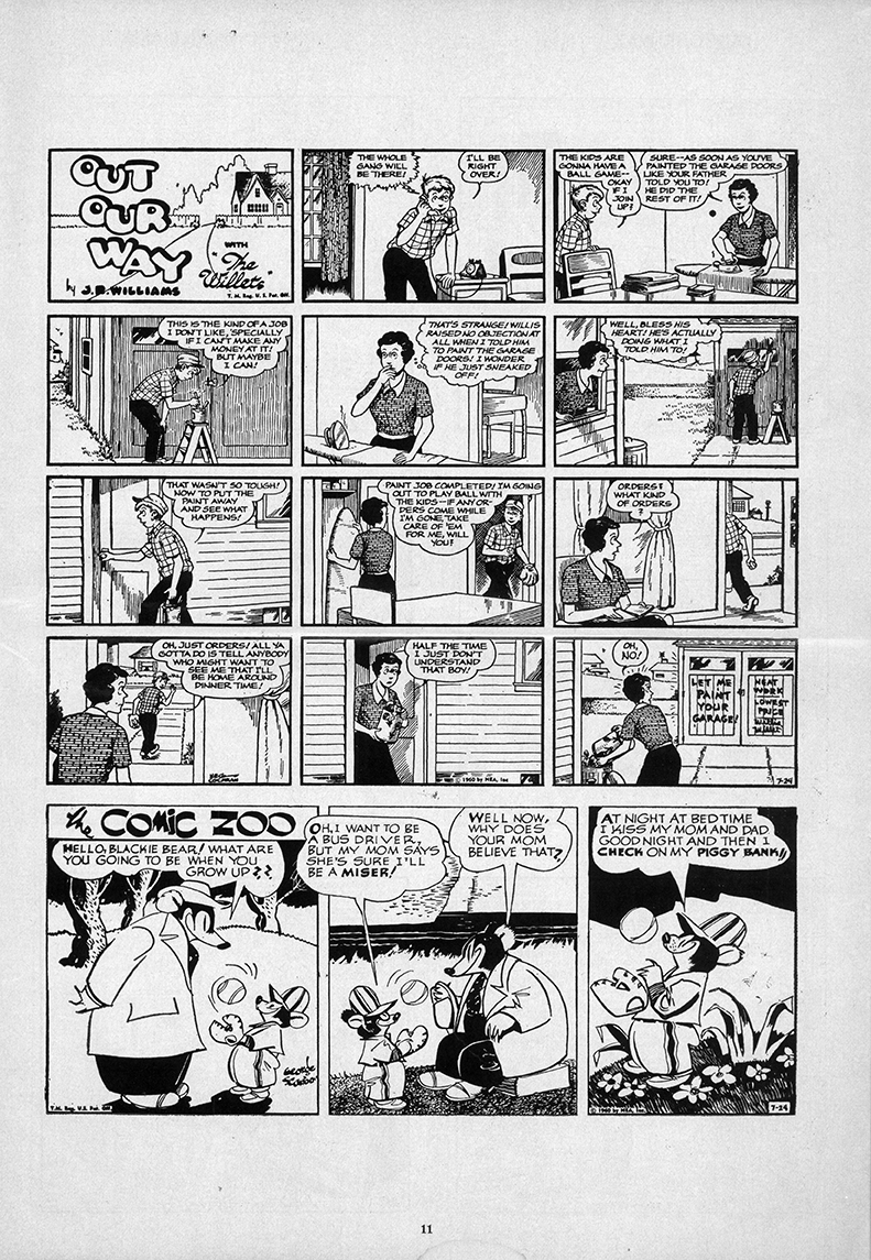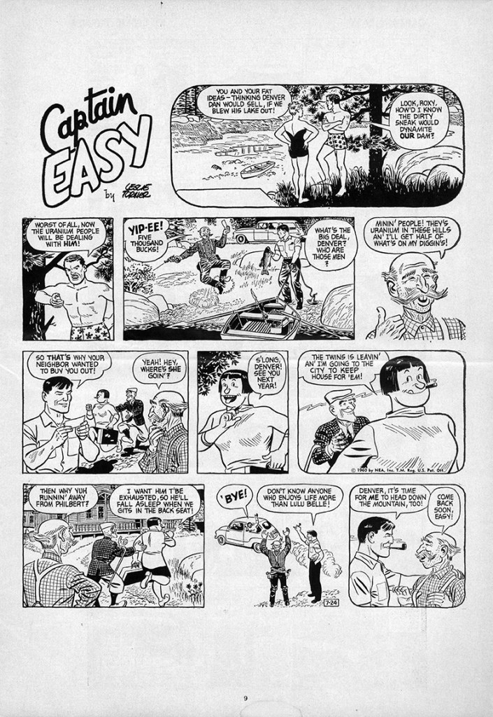 Pages 9 and 10 feature Captain Easy, by Lesley Turner (Sunday and dailies), followed by two pages of Sundays and dailies for J.R. Williams’s Out Our Way with “The Willets”.