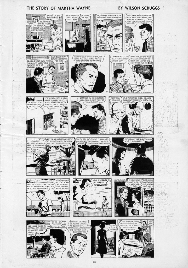 Pages 29 and 30 continue with more of Tizzie and Little Liz plus some Nadine Seltzer Sweetie Pie dailies and a couple left-ver Short Ribs. Bringing up the rear is seven days of Wilson Scruggs’s The Story of Martha Wayne.