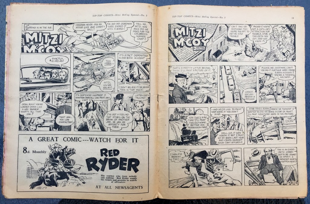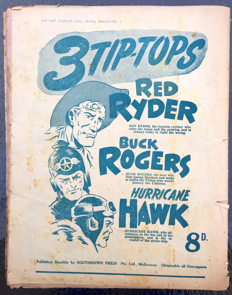 Because I was working on my Mitzi McCoy collection, the comic book that really caught my eye was Tip-Top’s “Special No. 3,” published by Southdown Press of Melbourne, Australia. Until recently, I never saw it listed for sale, only in google image search results.