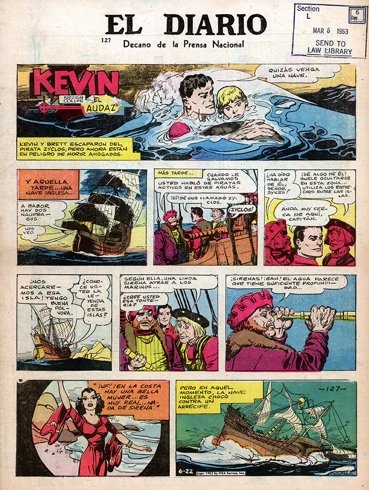But first, I have a question. As I’ve mentioned before, I’m very intrigued by foreign language versions of my grandfather’s comics. Since I had a near-immediate answer the last time I asked this sort of thing, I’ll try again—is anyone aware of a German version of KEVIN THE BOLD? If so, please comment below or send me an email (brianedwardcollins1[at]gmail.com). Thank you!