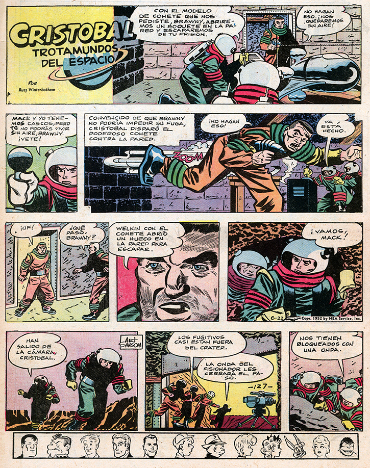 The second half of the publication brings us seven days of Bugs Bunny, Russ Winterbotham and Art Sansom’s Sunday-only Chris Welkin Planeteer, and a “fun page” with several small strips including Tom Trick Fun Detective (credited simply to Dale).