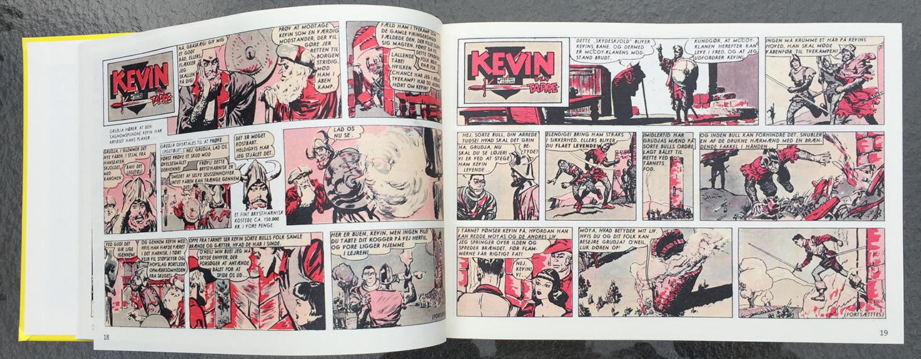 While researching Kevin’s Danish incarnation, I came across an auction site with 30+ episodes of “Kevin den Tapre” listed, check it out! (Though I’m not sure if they do international shipping). These are the same episodes appearing in the Danish collections. All but one of the listings are for the full-color examples that appeared in Volume 1.