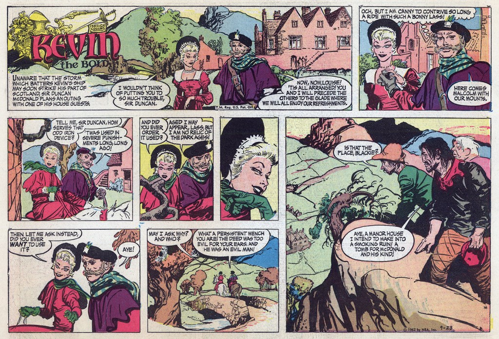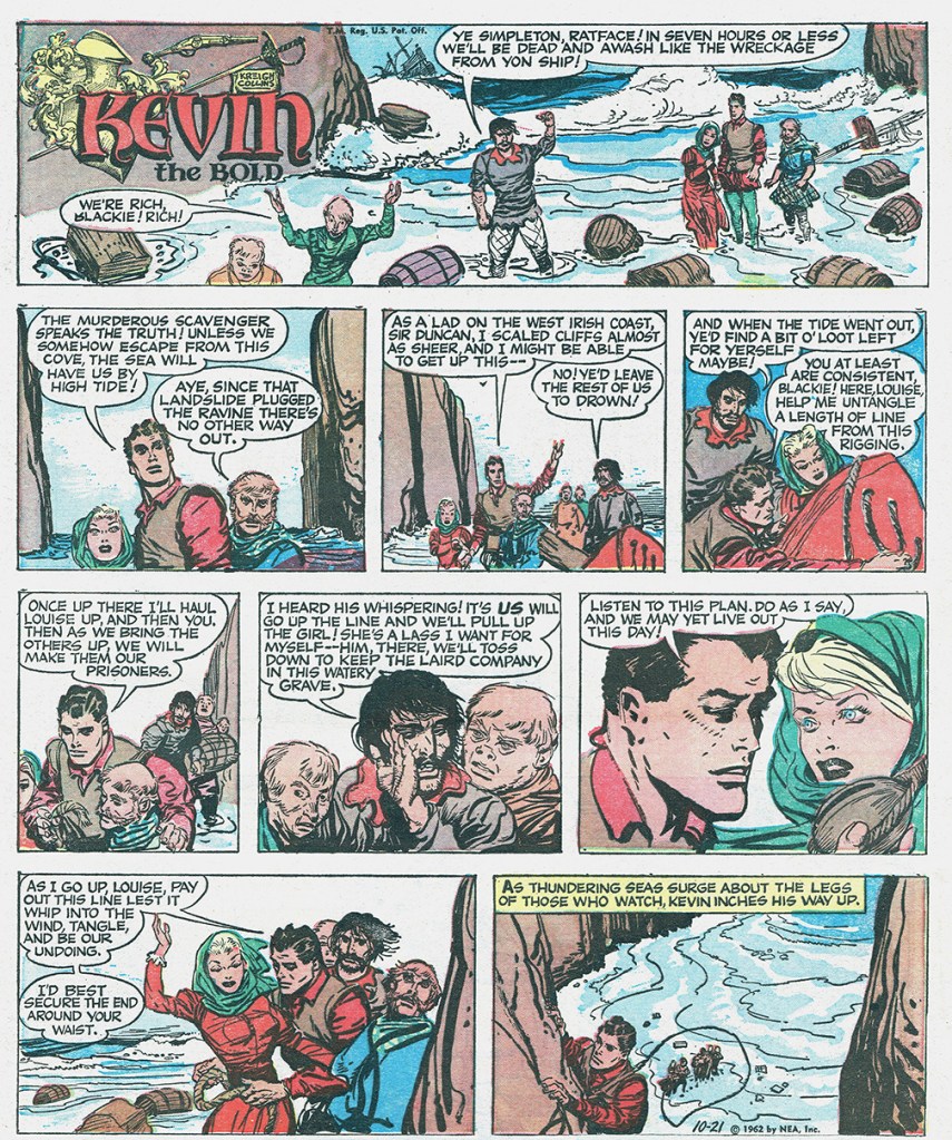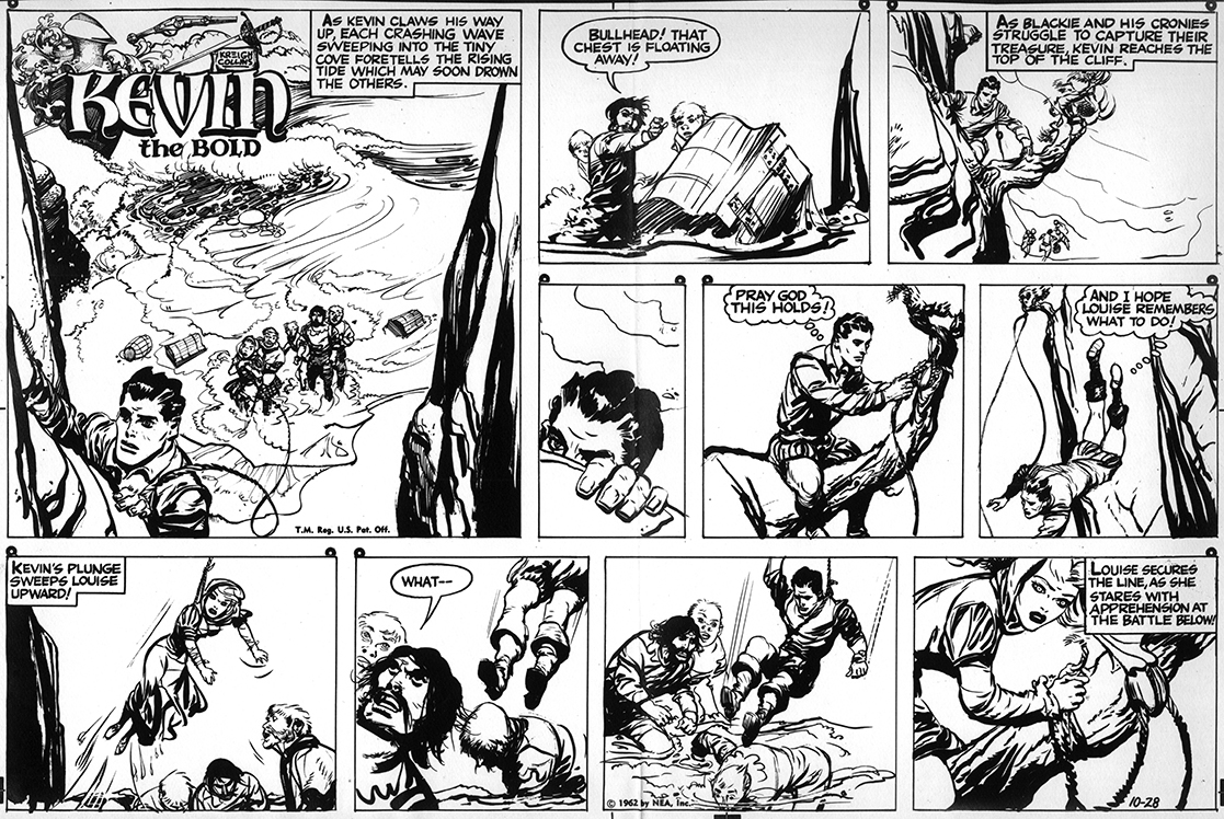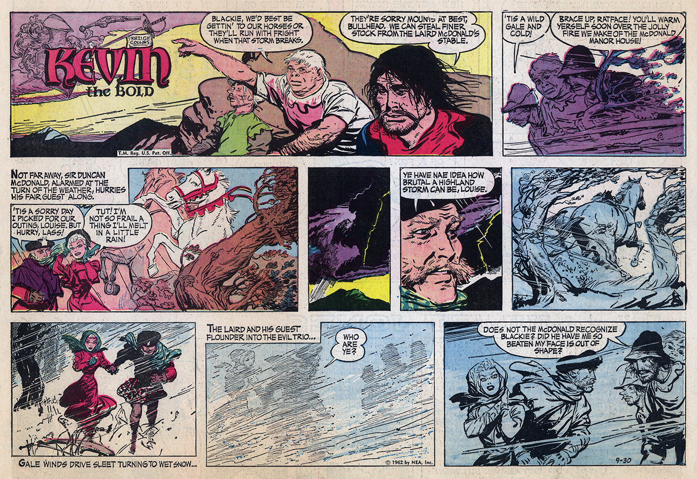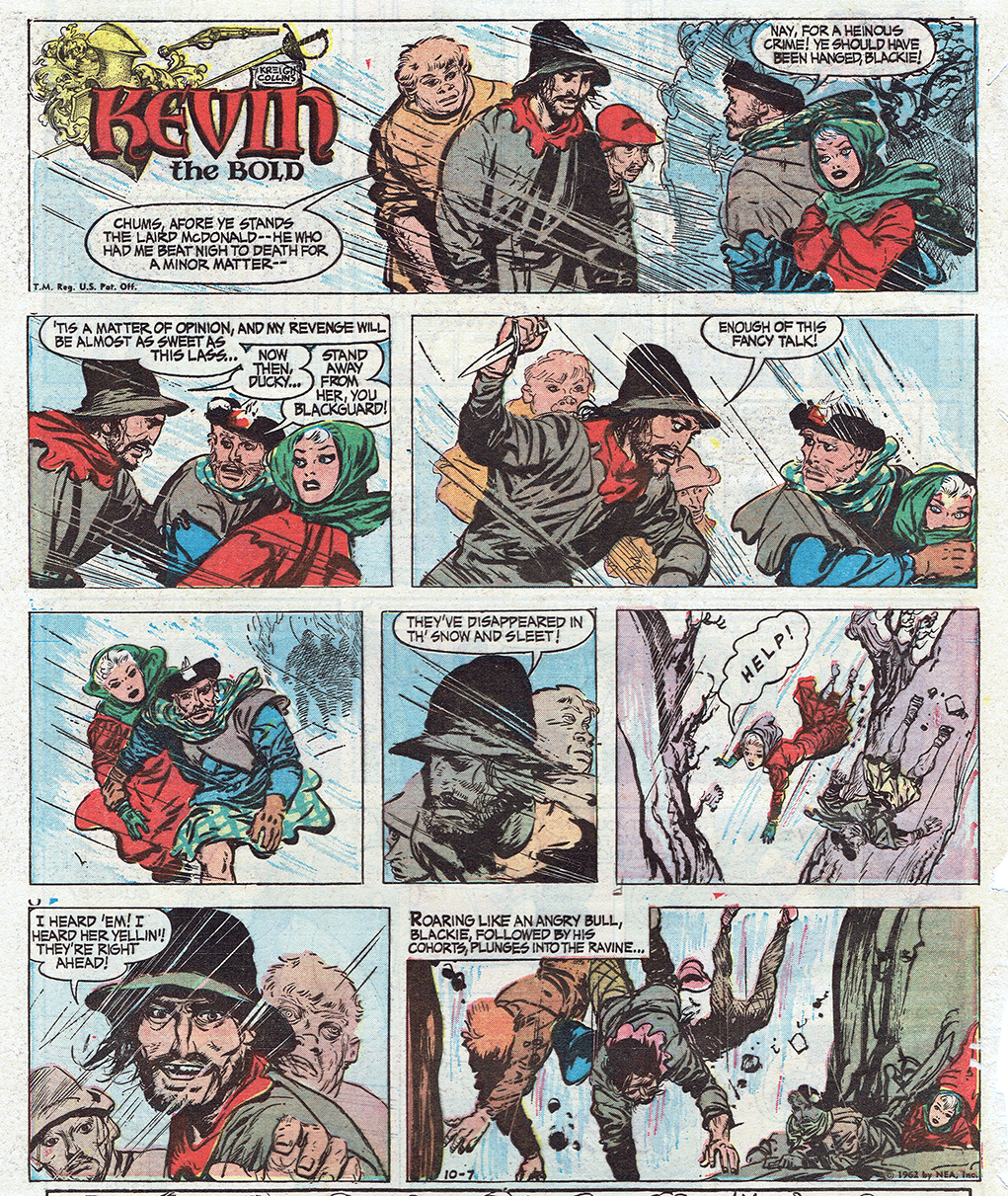 This sequence marks the end of Jay Heavilin’s run as the writer for “Kevin the Bold.” Like much of the action he scripted, it is comes across as more cartoonish than Collins’ work. An argument could be made that this isn’t a bad thing, that Collins’ stories were too traditional, and were more like illustration than cartooning. I’m biased, obviously, but what do you think? (There is a little-used comments feature at the very tail end of this post—hint, hint).