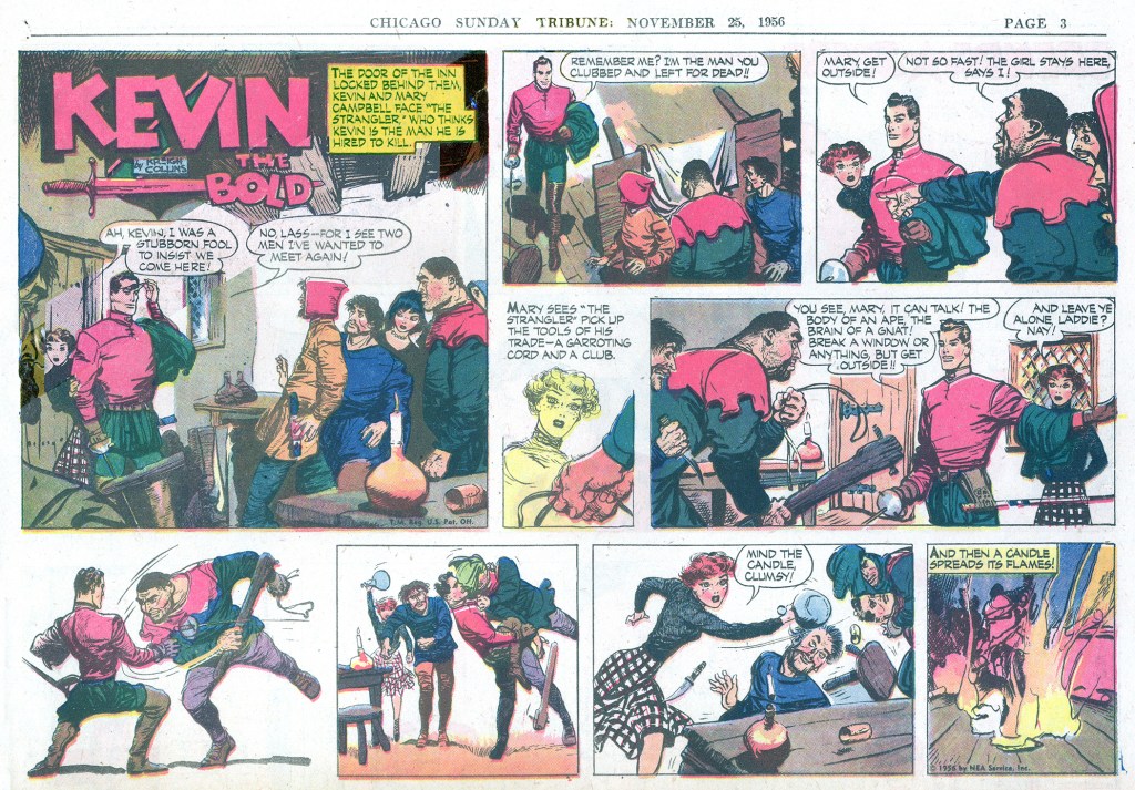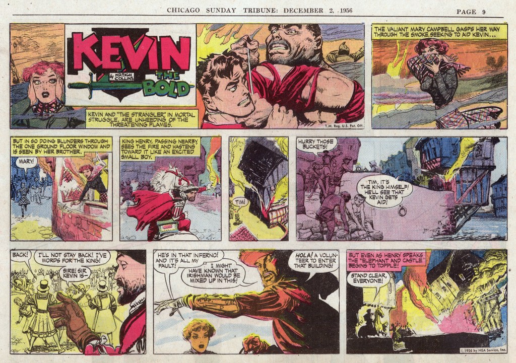 Even a most preliminary investigation of KEVIN THE BOLD reveals that he spent time as an Irish agent of King Henry VIII—indeed, in early 1956 the English king became a featured character and appeared regularly. But as the years passed, Henry aged out and was eventually succeeded by Queen Elizabeth I. She first appeared in the December 22, 1963 episode of Kreigh Collins’ feature.