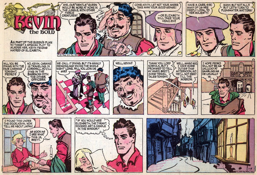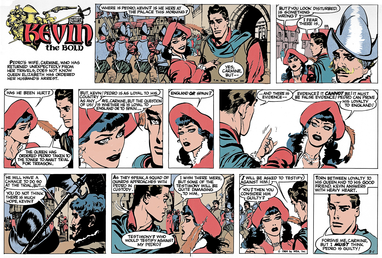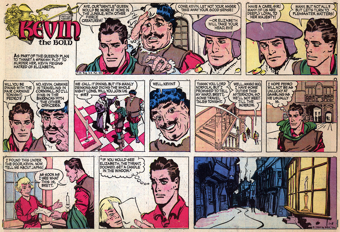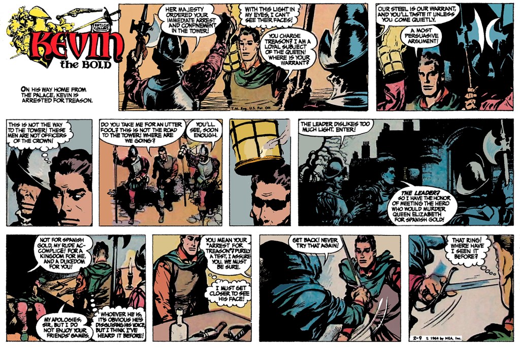 I offer a sincere thank you—this sequence’s remaining color episodes were all produced by Gregorio. Now, picking up where we left Kevin, he has just agreed to infiltrate a gang of conspirators plotting against Queen Elizabeth.