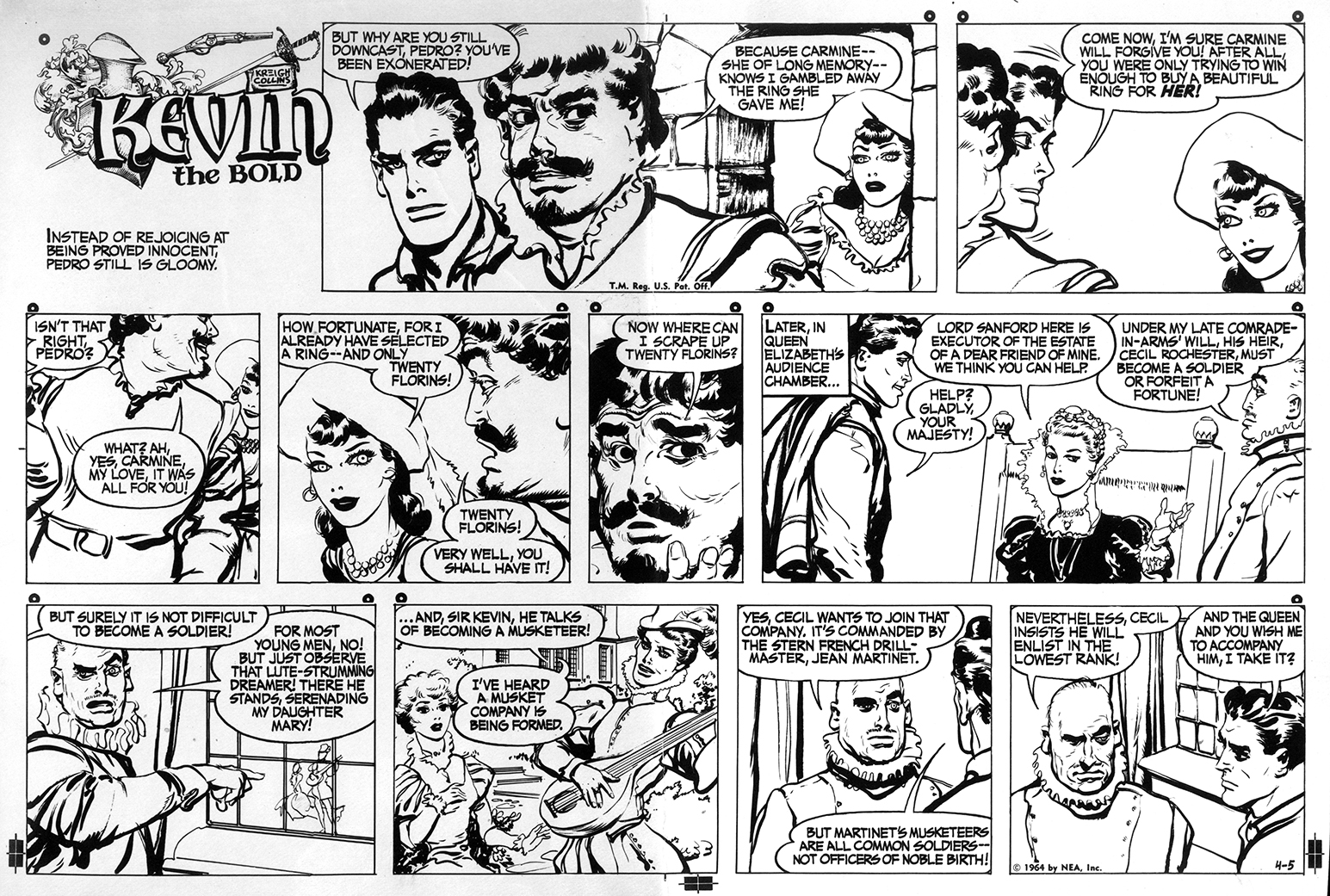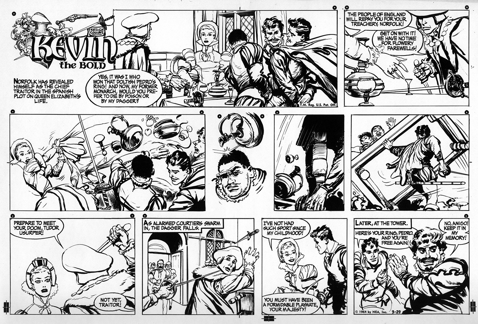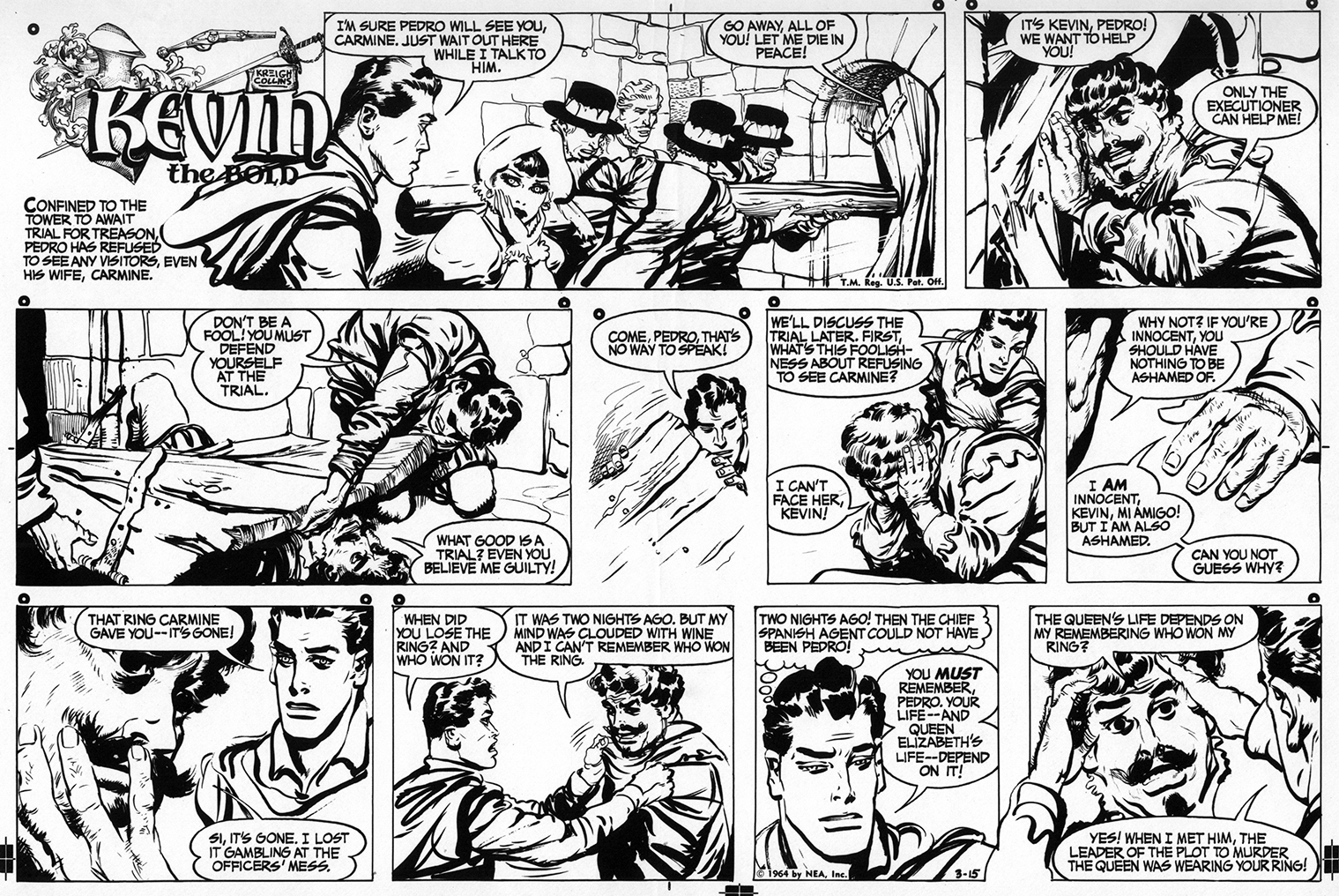 I offer a sincere thank you—this sequence’s remaining color episodes were all produced by Gregorio. Now, picking up where we left Kevin, he has just agreed to infiltrate a gang of conspirators plotting against Queen Elizabeth.