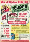 Next up were Harry Hanan’s silent comic LOUIE and an ad for Kellogg’s Corn Flakes (completely devoid of relationship advice from youngsters—how refreshing!). A page with Roy Crane’s CAPTAIN EASY, drawn here by Walt Scott, and V.T. Hamlin’s ALLEY OOP FOLLOWS; opposite these two strips is an ad for Fab detergent. The ad features a cartoonish family looking suspiciously similar to the family from the Corn Flakes ad, and hypes a pretty cool giveaway—a free house!—valued at $18,000 (things have certainly changed in the last 74 years!). then it’s Frank Godwin’s RUSTY RILEY, REX MORGAN, MD by Bradley and Edgington, BOOTS by Martin, and Merrill Blossar’s FRECKLES AND HIS FRIENDS (plus the topper strip HECTOR).