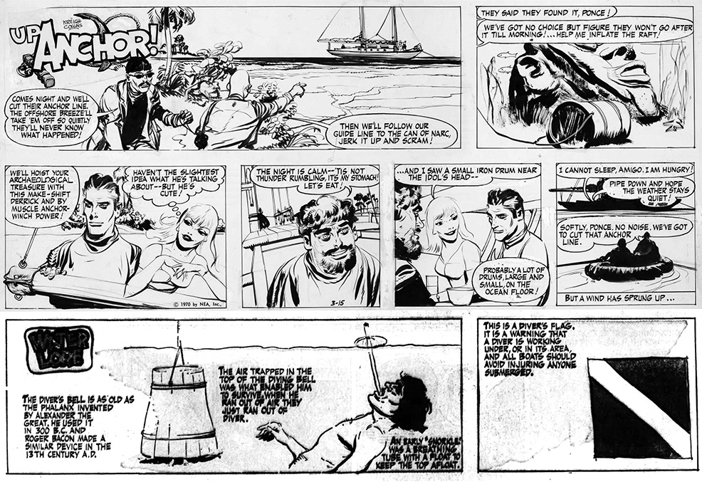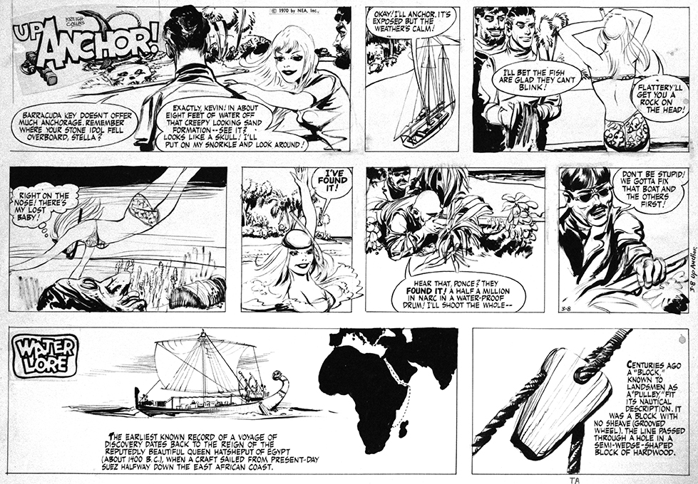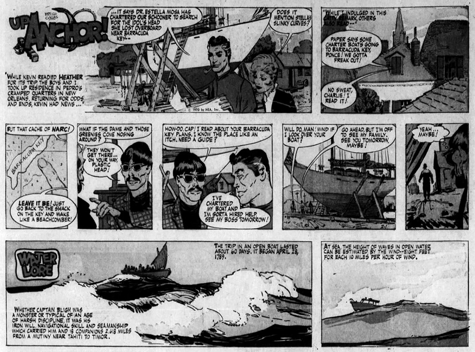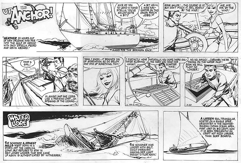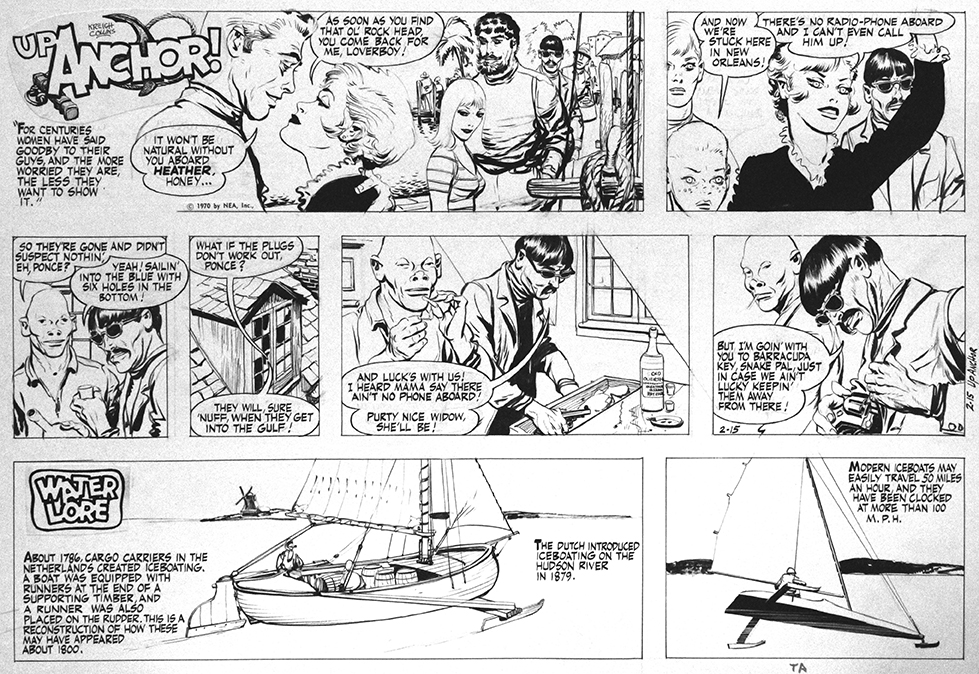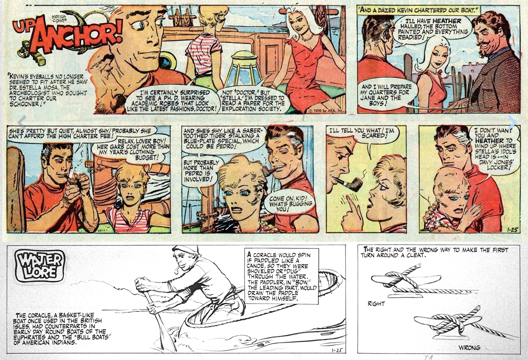 With summer here, it seems appropriate to feature a sequence from Kreigh Collins’ sailing-themed comic strip UP ANCHOR!. In this chapter, Kevin Marlin and his family are making plans for an extended journey south aboard Heather. Of the 19 episodes, only half are in color, but they will be supplemented in the coming weeks with some interesting articles on the real-life events that inspired the action in UP ANCHOR!.